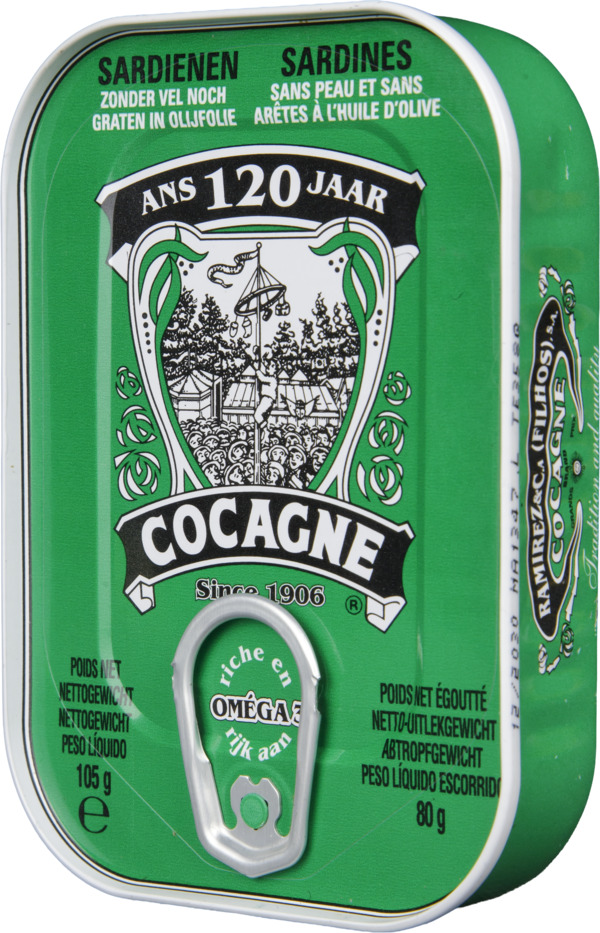 Toute la saveur de la sardine portugaise traditionnelle, mais sans peau ni arêtes. Une des spécialités Cocagne, idéale pour petits et grands de par la façon simple dont elle combine le pratique avec le sain. C’est un mets prêt à manger, avec tous les bienfaits nutritionnels de la sardine et de l’huile d’olive, dans une présentation plus attrayante et facile à préparer.